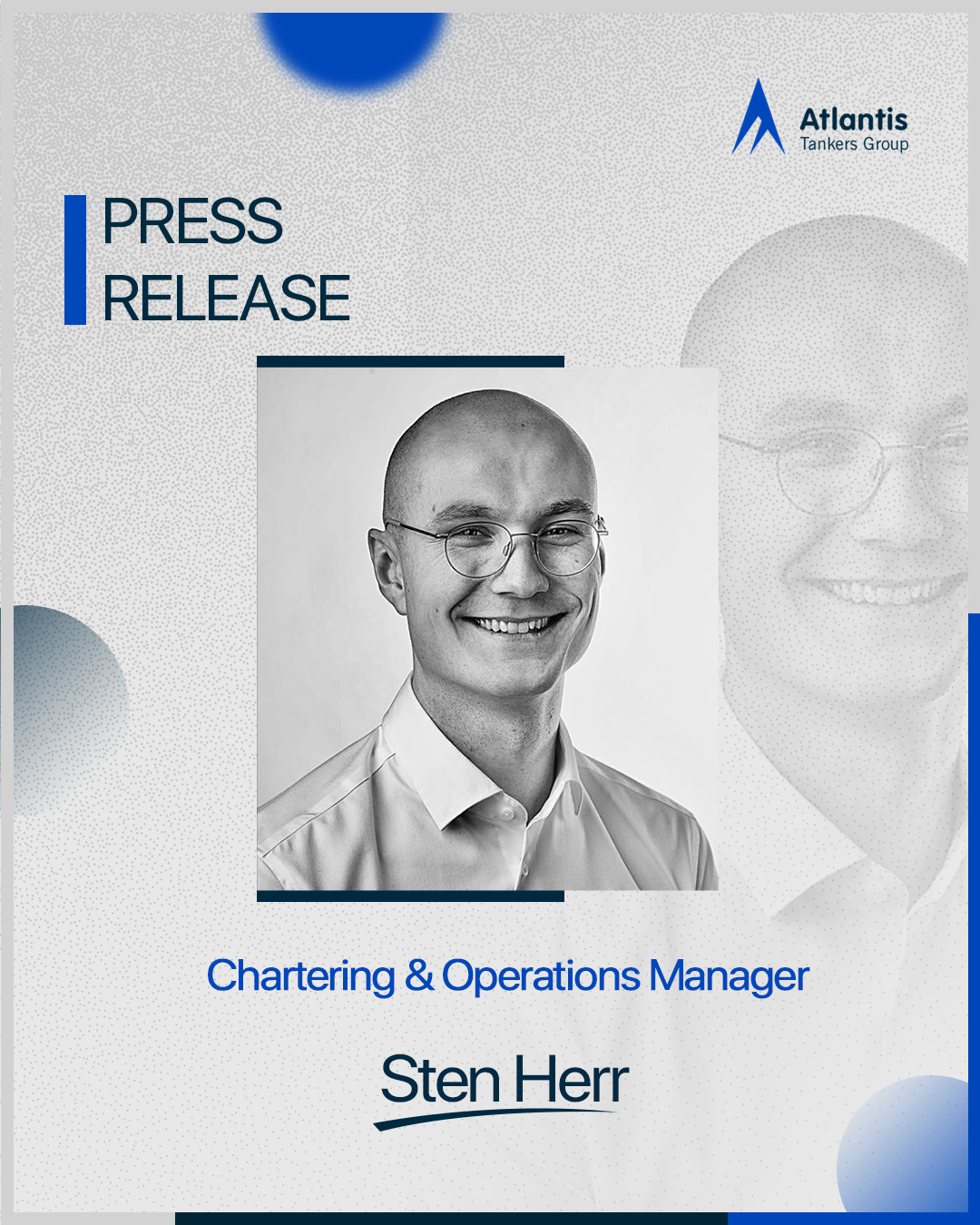 Atlantis Tankers Group is pleased to announce the appointment of Sten Herr as Chartering & Operations Manager, marking a strategic strengthening of the company's commercial leadership as it continues to expand its tanker portfolio and operational footprint.